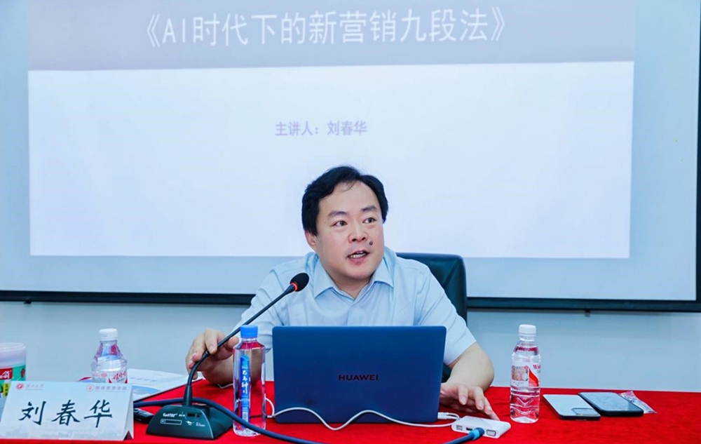 开班仪式结束后,由中国著名营销专家刘春华教授带来一场精彩的课程《AI时代下新营销九段法》。