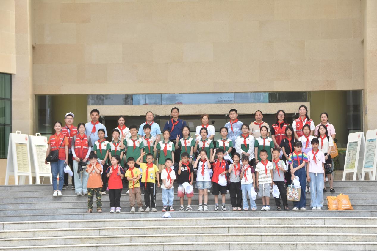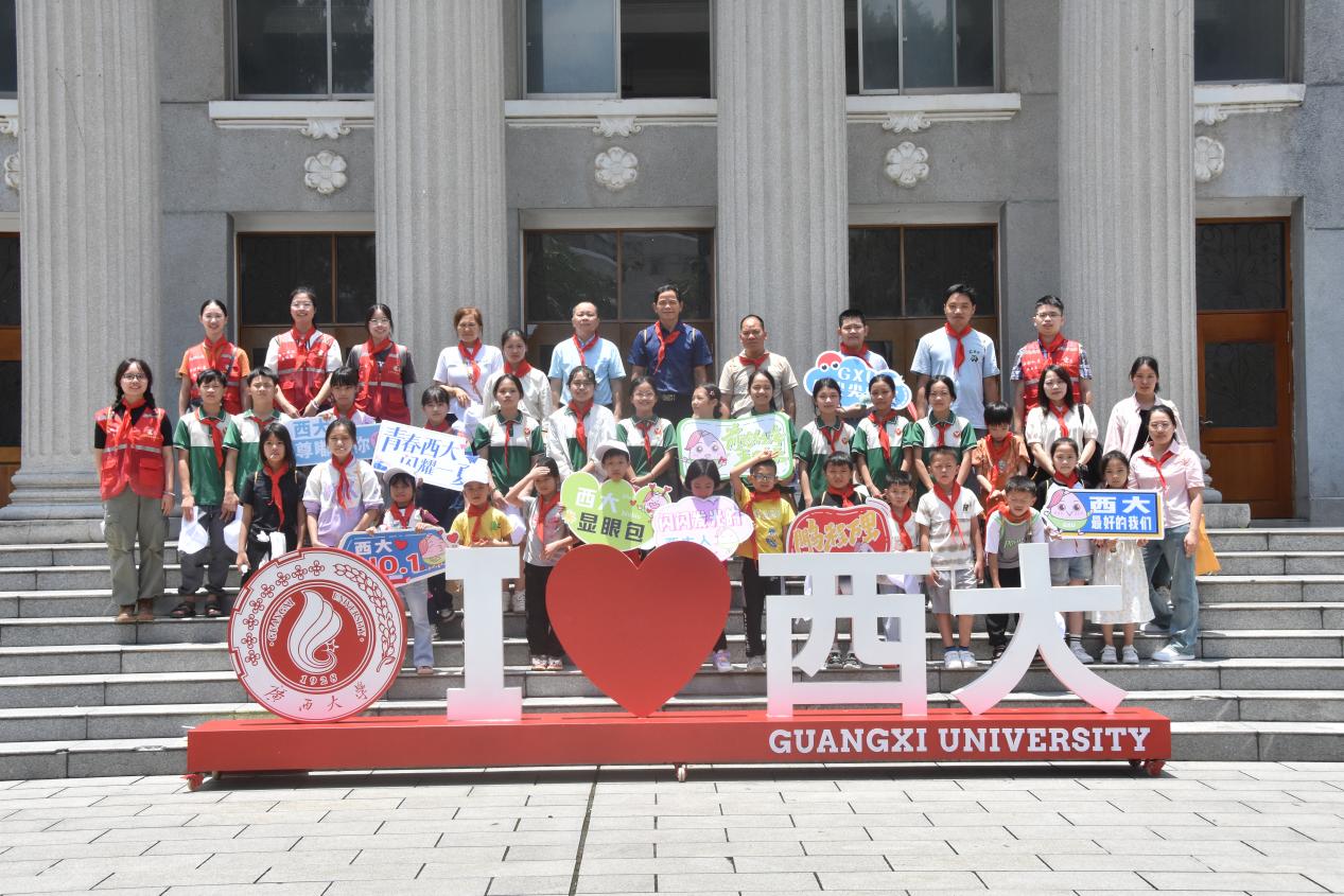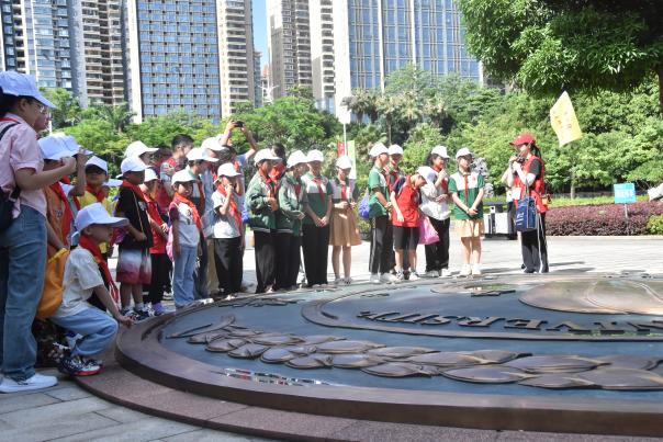 同学们来到365英国,跟着志愿者“学姐”一起步行游览校园。在育才广场,听学姐讲解“梧州建校—桂林兴校—西迁榕江—南宁复校”的历史,巨幅时光轴和记录学校历史重大事件的浮雕等深深吸引了同学们,纷纷驻足拍照留念。