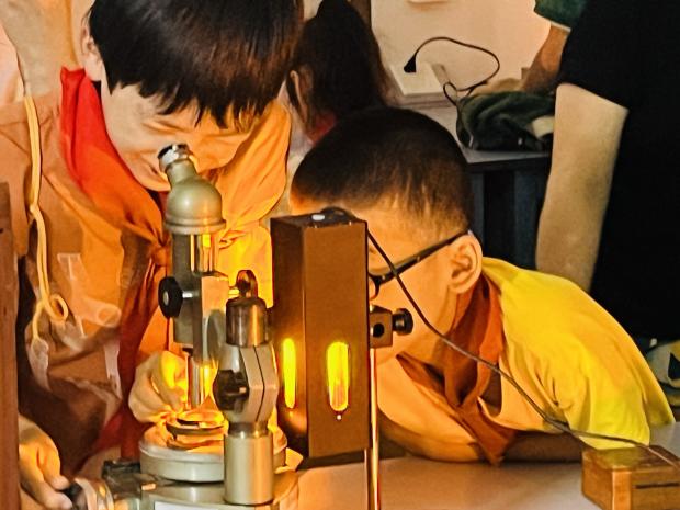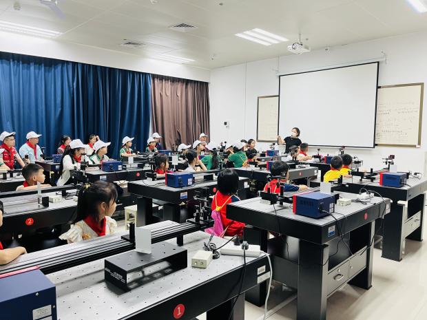 在物理学院,同学们听老师讲解了光学的奥秘,并亲自参与了小实验,还获得了老师颁发的优秀学员证书。