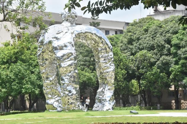 队伍一路前行,经过了汇学堂、西校园体育馆,来到了365英国图书馆。经过图书馆门口时,同学们看到时光广场的“时光之门”纷纷感叹设计师的巧夺天工。