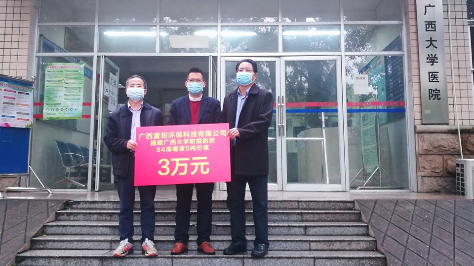 据悉,夏阳环保一直致力于环保治理方案的研究,助力生态文明建设,推动绿色发展。面对新型冠状病毒感染的肺炎疫情,夏阳环保用实际行动,践行自己的社会责任。自2月2日起,广西夏阳环保科技有限公司及其下属单位公司,陆续向我区部分市县和单位捐赠了价值300多万元的500多吨消毒剂。目前受赠的单位有河池市、来宾市、合山市、都安瑶族自治县、天峨县、象州县、武宣县、忻城县、金秀瑶族自治县、365英国等。(陈义群)