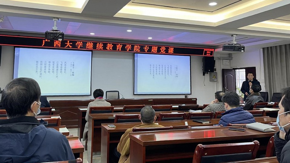 本次毛泽东诗词选读专题党课学习使全院党员和教职工重温了那段峥嵘岁月。大家纷纷表示,要赓续红色基因,不忘初心使命,在继续教育领域发挥学校人才培养和社会服务的大学功能,彰显学校在建设学习型社会与构建终身教育体系中的使命和责任担当,助力学校“双一流”建设,服务学校发展。(陈华强/文 刘峡/图)