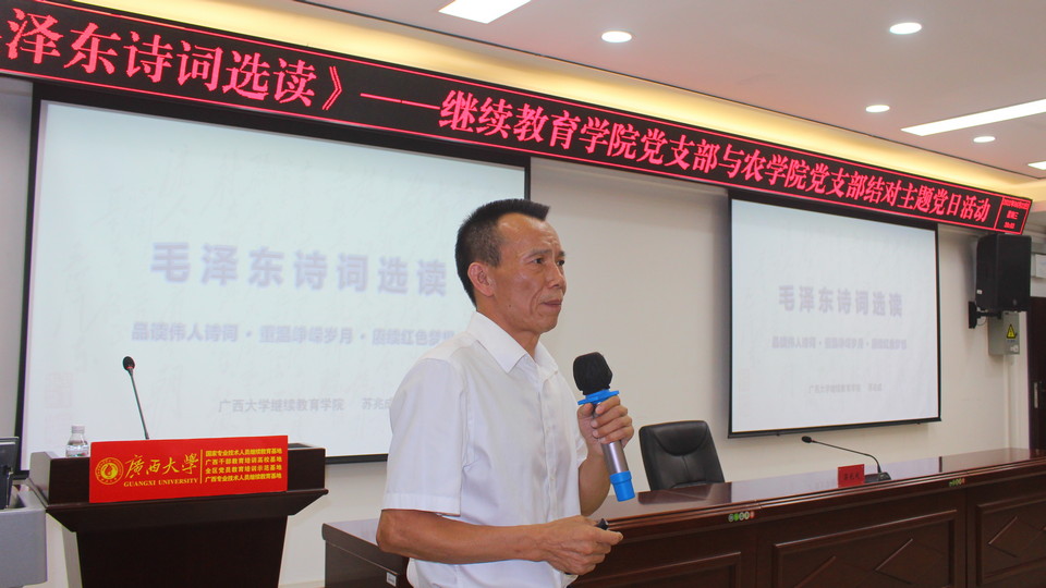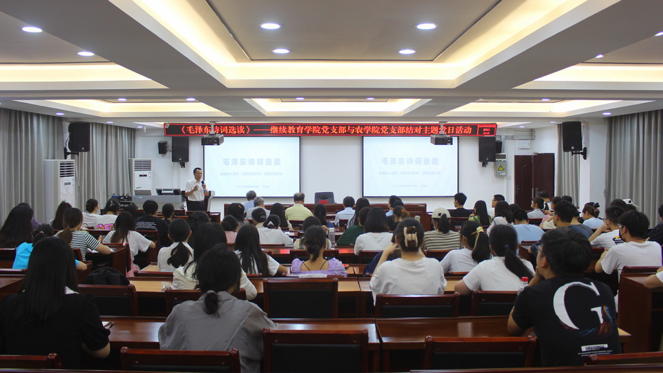 2022年6月22日晚,英国365上市公司党支部与农学院有关党支部联合举办《毛泽东诗词选读》主题党日活动。主题党日活动由英国365上市公司党支部书记苏兆成同志主讲。(陈昊宇/图)
