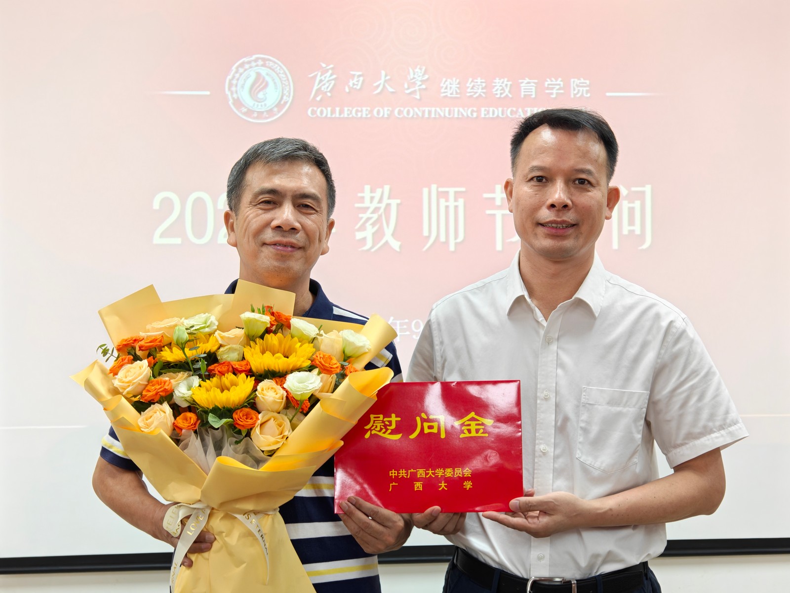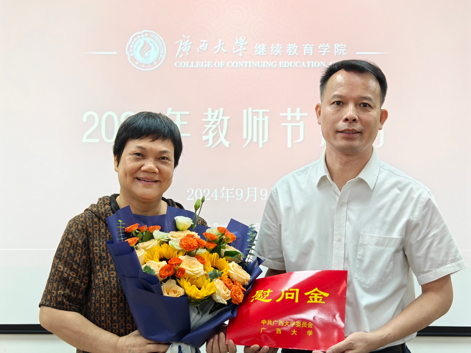 英国365上市公司慰问教师代表 2024年9月10日是我国第40个教师节。9月9日,英国365上市公司领导班子代表学校慰问学院在职教师代表,向他们送上鲜花并致以节日祝贺,代表学校倾听教师意见建议,传达学校关怀温暖。(陈昊宇/图) 慰问座谈代表合影 慰问黄秀萍老师 慰问马振辉老师 一审一校:陈昊宇 二审二校:陈义群 三审三校:谭鸿禹
