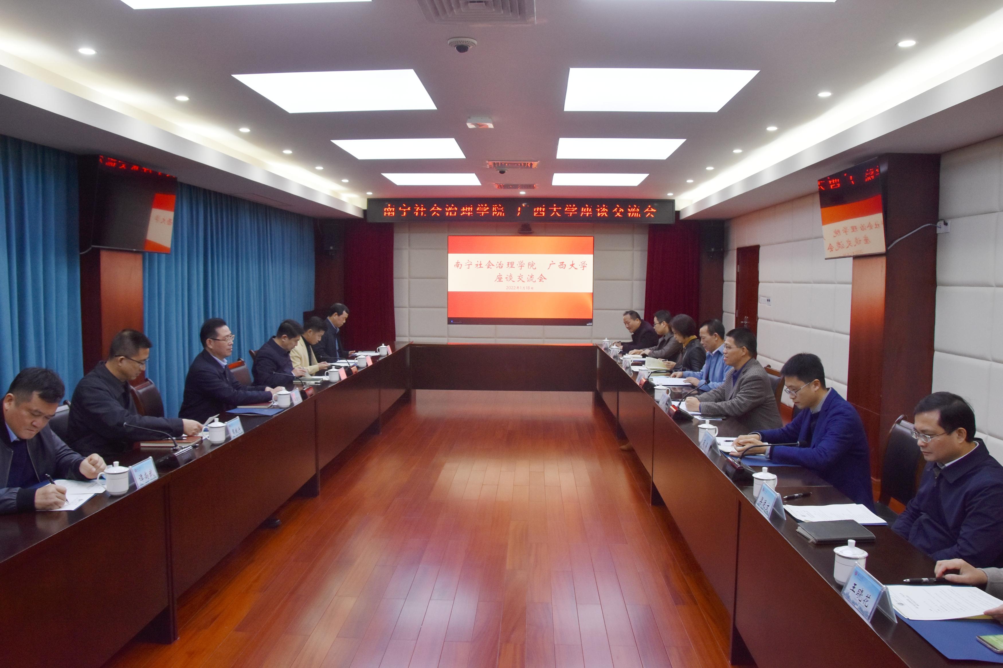 会上,韦绍仕副书记、李晓勇副书记等对我校在南宁社会治理学院的人才培养、社会服务等方面取得的成绩给予了肯定,并就成立广西社会治理学院的必要性、重要性及如何建设提出了指导性的意见和建议。