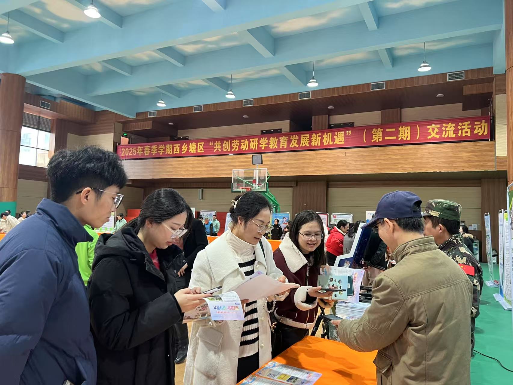 研学主管部门领导、各学校老师及同行在我校展台前交流