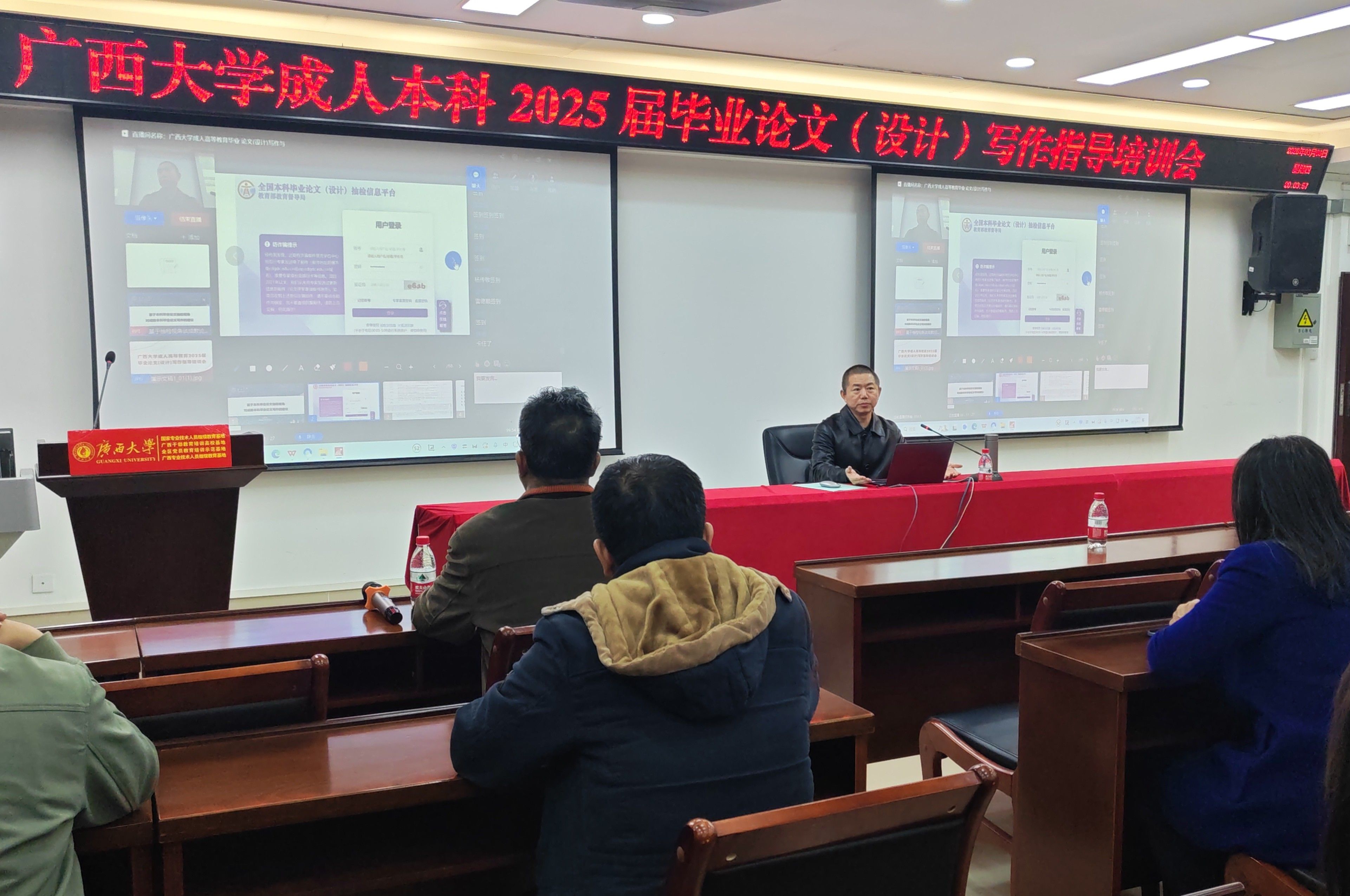 为强化我校成人本科毕业论文(设计)写作规范,提升学生毕业论文(设计)写作水平,我院于2025年3月6日晚举办了2025届成人本科毕业论文(设计)写作指导培训会。培训会由英国365上市公司副院长谭鸿禹主持,我校教育教学质量监控与评价中心副主任、教学督导团副团长王恩界教授主讲,培训采用线下与线上同步直播相结合的形式举行,1200余名2025届成人本科毕业生参加了培训。