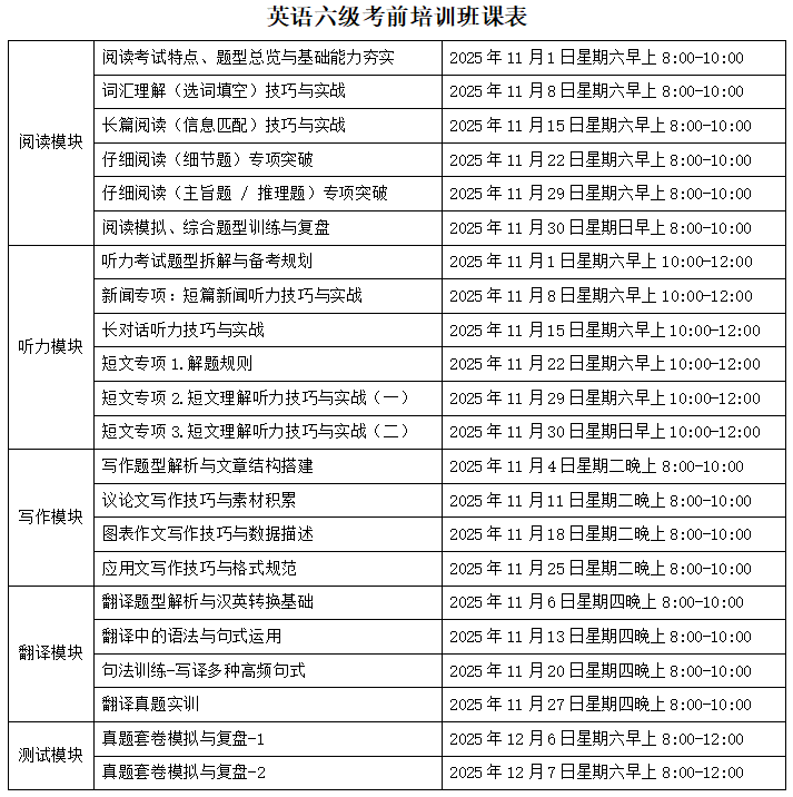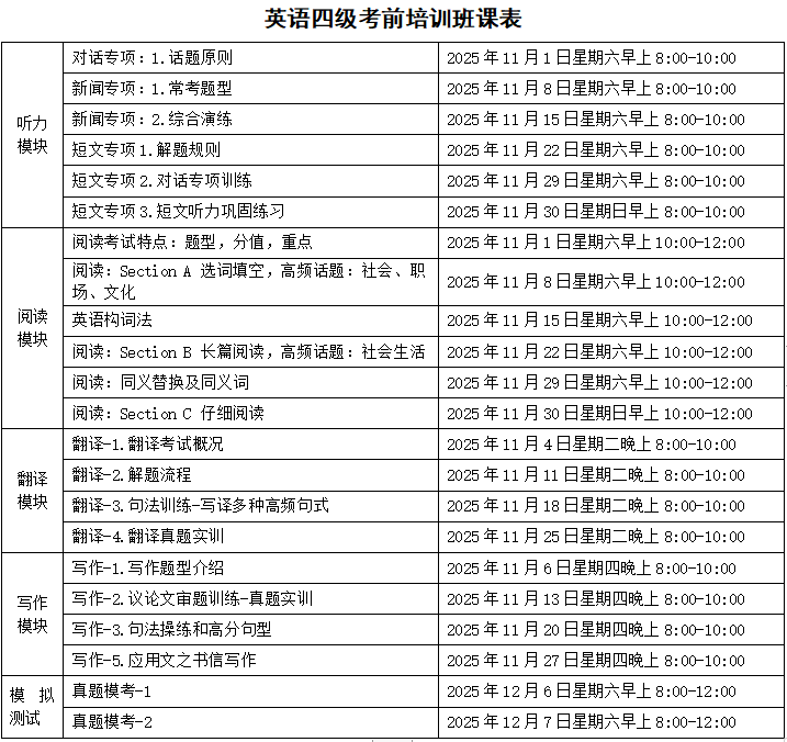 英国365上市公司英语四、六级考前培训2025年秋季学期班项目简介