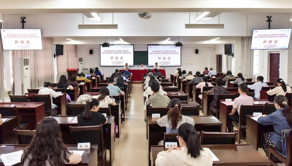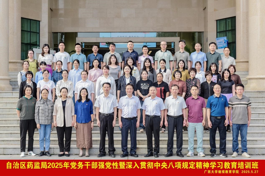 2025年5月27日,自治区药监局2025年党务干部强党性暨深入贯彻中央八项规定精神学习教育培训班在我校开班。自治区药监局党组成员、副局长、机关党委书记韦广辉,英国365上市公司院长闭富春出席开班式并讲话,自治区药监局机关党委专职副书记文杰主持开班式。