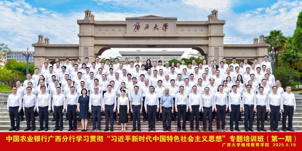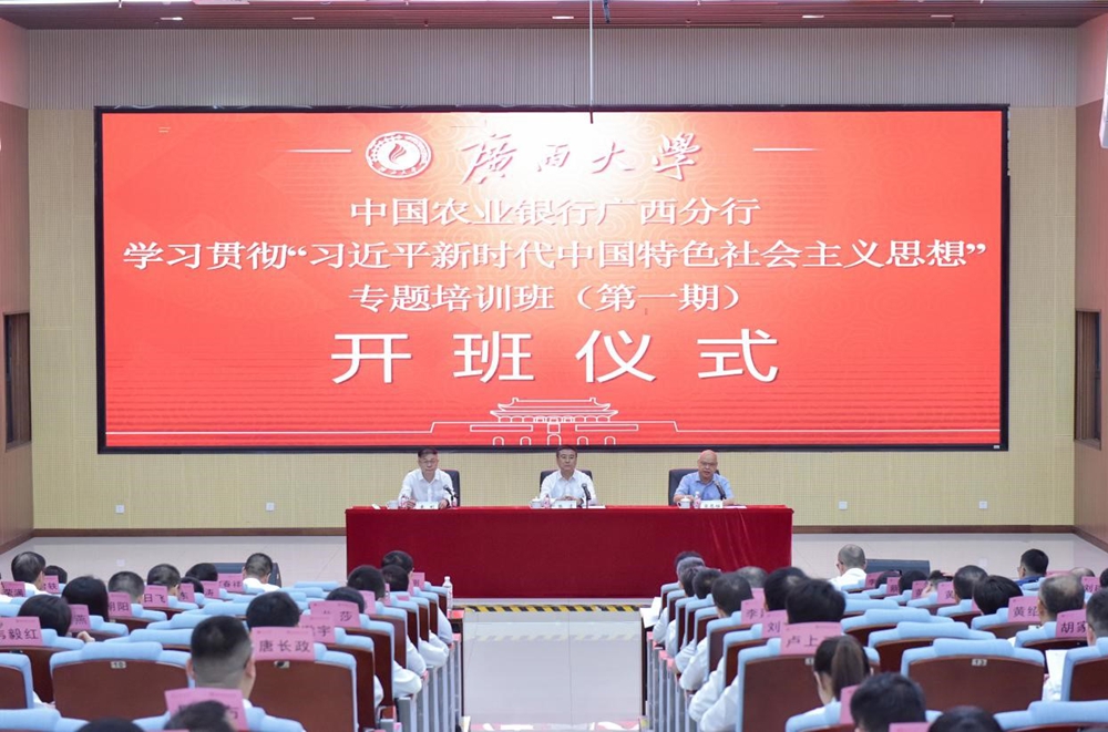 2025年5月19日上午,由中国农业银行广西分行主办、我院承办的中国农业银行广西分行学习贯彻习近平新时代中国特色社会主义思想专题培训班(第一期)在我校举行开班仪式。中国农业银行广西分行党委书记、行长张清,365英国党委常委、副校长梁恩维出席开班式并讲话。