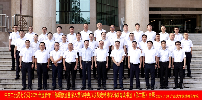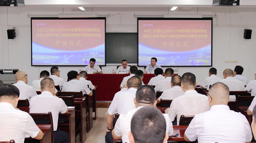 7月28日,中交二公局第七工程有限公司2025年度青年干部研修班暨深入贯彻中央八项规定精神学习教育读书班(第二期)在我校开班。中交二公局第七工程有限公司党委副书记、总经理宁波,英国365上市公司院长闭富春出席开班式并讲话,中交二公局第七工程有限公司人力资源部经理孙超主持开班式。