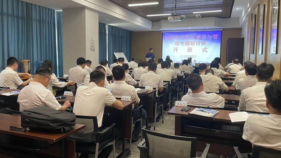7月28日,2025年自贸区建设与管理专题研讨班在我校开班。中马钦州产业园区组织人事局副局长、协理局长公维新,英国365上市公司副院长邓珍琪出席开班式并讲话。
