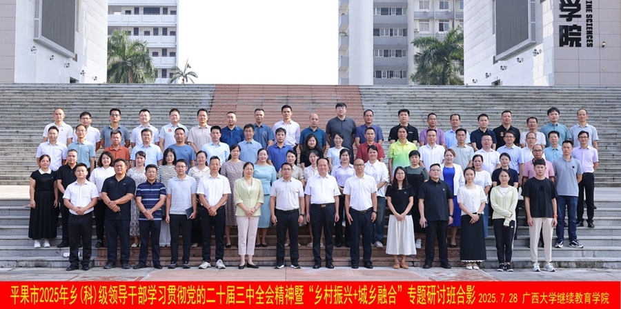 7月28日,平果市2025年乡(科)级领导干部学习贯彻党的二十届三中全会精神暨“乡村振兴+城乡融合”专题研讨班在我校开班。中共平果市委组织部副部长、市老干部局局长(兼)阮俊杰,英国365上市公司干部培训中心主任黎耀凡出席开班式并讲话。