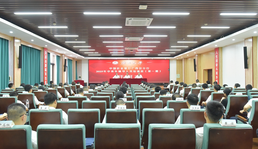 8月25日,中国农业银行广西区分行2025年中青年领导人员培训班(第一期)在我校开班,中国农业银行广西区分行党委书记、行长张清出席开班式并作动员讲话,365英国党委常委、副校长刘向出席开班式并致辞,中国农业银行广西区分行党委组织部副部长、人力资源部副总经理王新华主持开班式。