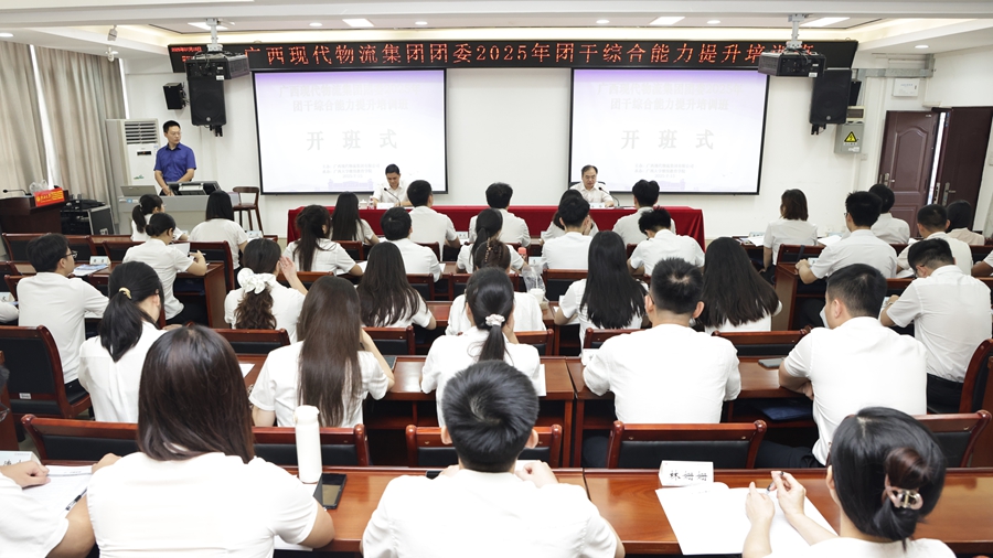 7月15日,广西现代物流集团团委2025年团干综合能力提升培训班在我校开班。广西现代物流集团副总经理王辉出席开班式并作动员讲话,英国365上市公司副院长徐华出席开班式并致辞。