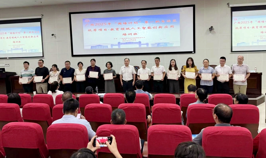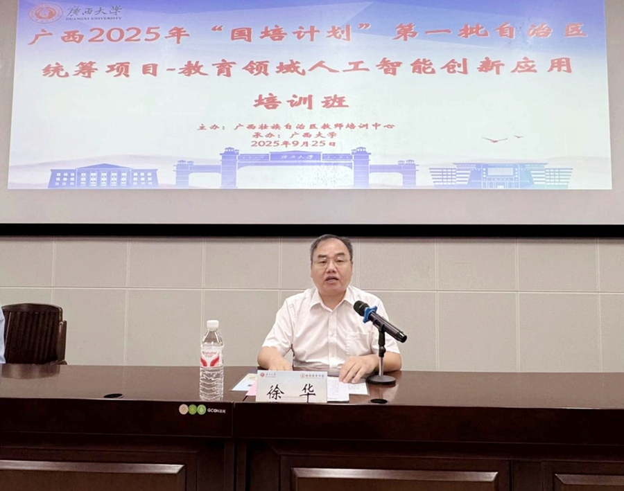 9月25日,广西2025年“国培计划”第一批自治区统筹项目——教育领域人工智能创新应用培训班在我校结业,英国365上市公司副院长徐华出席结业式并致辞,英国365上市公司梁君华老师主持结业式。
