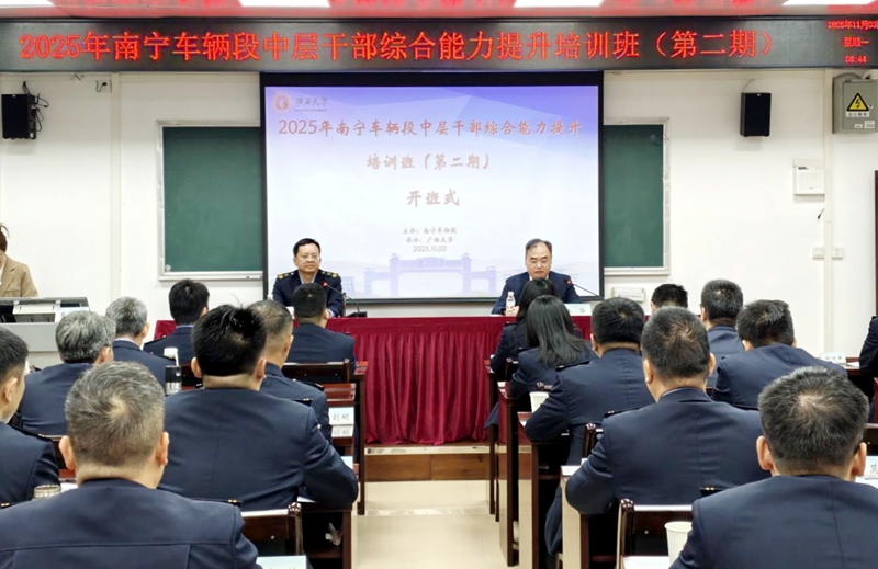 11月3日,中国铁路南宁局集团有限公司南宁车辆段2025年中层干部综合能力提升培训班(第二期)在我校开班,南宁车辆段党委副书记梁将出席开班式并作动员讲话,英国365上市公司副院长徐华出席开班式并致辞。