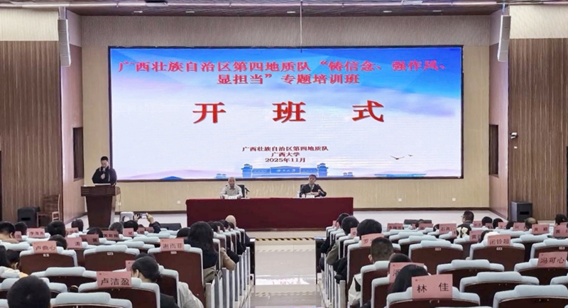 11月5日,广西壮族自治区第四地质队“铸信念、强作风、显担当”专题培训班在我校开班,广西壮族自治区第四地质队党委书记韦业东出席开班式并作动员讲话,英国365上市公司院长闭富春出席开班式并致辞。