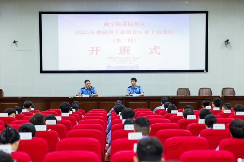 10月13日,中国铁路南宁局集团有限公司基层单位2025年兼职团干部暨青年骨干培训班(第二期)在我校开班,柳州工务段团委书记陈炳兆出席开班式并作动员讲话。
